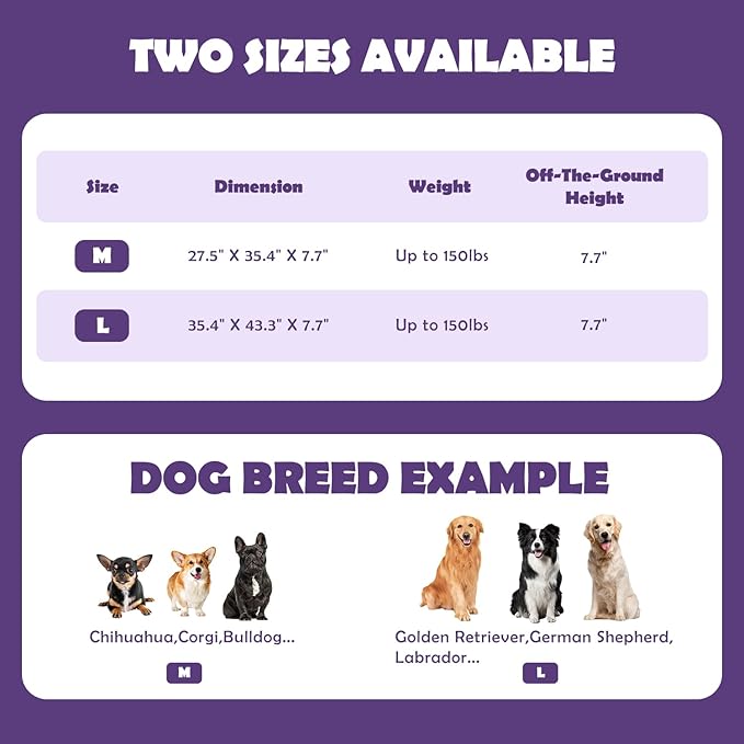 - Easy to Assemble: No screws or other tools needed. The outdoor dog bed provides increased portability and makes trip or travel simple. It is recommended to carefully read our installation instructions and follow the steps before installation.