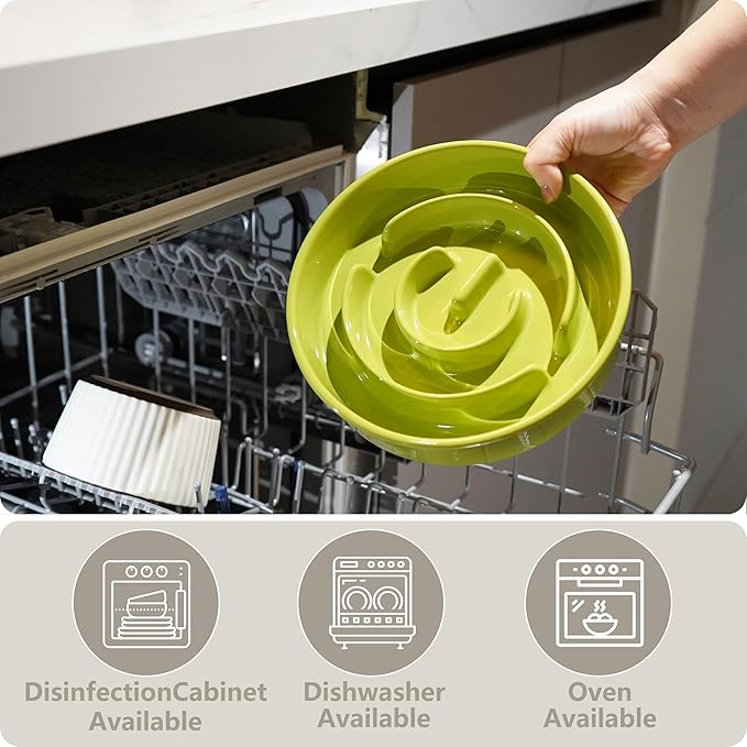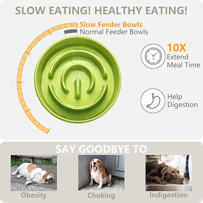 - 【Slow Eater Bowl】Change your dog's fast and excessive eating behavior — Pets that eat quickly tend to get fat and choke, which can make the dog sick. Our innovative slow feeder dog bowl is meticulously crafted to encourage your dog to eat at a slower pace, extending mealtime by 10 times.