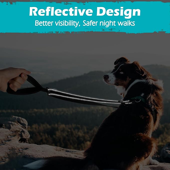 PetBonus Two Point Control Dog Leash, Works with No Pull Harnesses, No Tangle Training Leashes, Soft Padded and Reflective Walking Lead, Converts to Single Lead for Medium Large Dogs (Black)