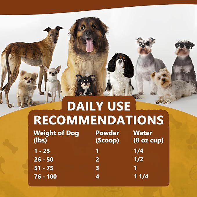 - Fast & Easy: Beef bone broth powder can be consumed both dry or wet, provides a quick and convenient way to enhance your dog’s diet. Simply mix into food or stir into warm water! Your pet will love it!