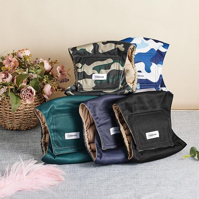 - Breathable and Comfortable: The lining surface of this male dog wrap is made of breathable and soft knitted fabric, which is skin-friendly and comfortable for your pet to wear without burden. The khaki-colored lining allows you to check your dog's urination in time and protects your puppy male dog's nappy from urine stains, which can affect the aesthetics and prolong the service life. The ones with shrink-stretch edges can fit the waistline and increase wearing comfort.