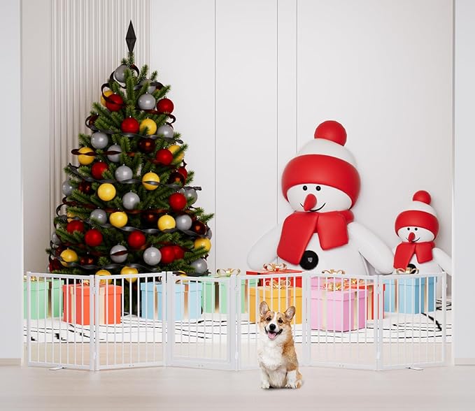 - [Versatile Sizes]: Our pet dog gate is available in 24-inch and 32-inch heights, perfect for puppies, small and medium dogs pets. Multi-choice of 2 panles, 4 panles and 6 panles, suitable for stairs, kitchens, bedroom doors, corridors and other indoor and outdoor forbidden areas.