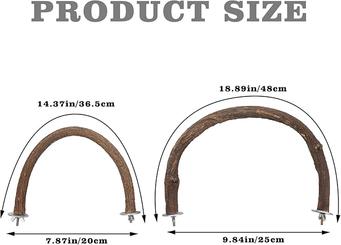 - Set of Two U-Shaped Bird Perches: This set includes two U-shaped natural wooden bird perches, with one large and one small size to accommodate different birdcage configurations. Each perch comes with screws and wing nuts on both ends, making them easy to install inside or outside bird cages of various sizes.