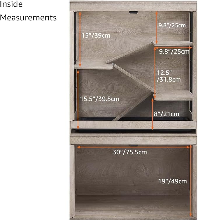- EASY MAINTENANCE AND CLEANING: Featuring a pull-out plastic tray, cleaning and changing bedding is a breeze, ensuring a hygienic environment for your pets. Additionally, the bottom storage space provides a convenient solution for storing your small animals' essentials.
