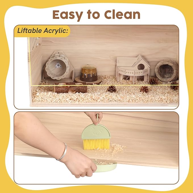 - Convenient Access & Visibility --- The two openable acrylic tops provide easy access for feeding, cleaning, and interacting with your pets. These transparent windows not only allow for effortless access but also offer excellent visibility, enabling you to keep an eye on your pets’ activities and health throughout the day.