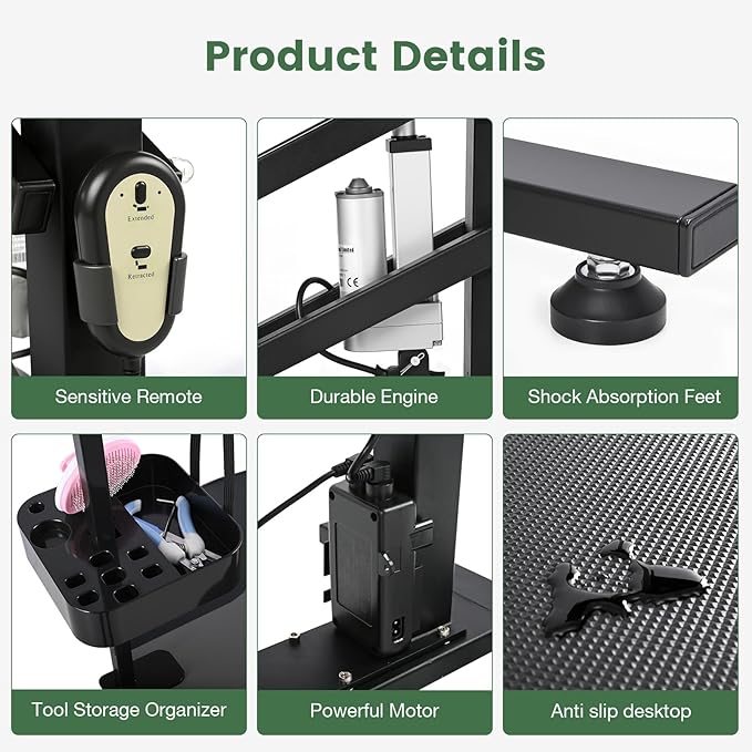 - 【Anti Slip & Remote Control】 The table is equipped with an anti-skid surface to keep your pet secure during grooming. Plus, the included remote control makes adjusting the table height a breeze.