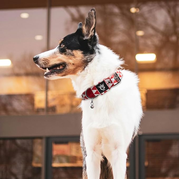 - Metal Collar for Dogs: The dog collars for medium dogs and large dogs with 4 adjustable points, easy to adjust the comfortable fit and attach to dog leash or dog collar. Please follow the size chart to measure your dog carefully before purchasing to ensure the halloween collar for dogs or christmas collar for dogs are fit well to your dog. For dog neck (L: 18.9”-21.7”, M: 15.8”-18.9”, S: 12.6”-15.8”)