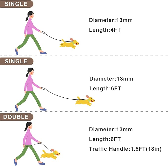 - 【Available in 6 beautiful colors and comes in 2 sizes】4/6 foot dog leash is great for walking, running, hiking or training, and is a perfect balance between freedom and control. Give your dog plenty of freedom while keeping everything under your control.