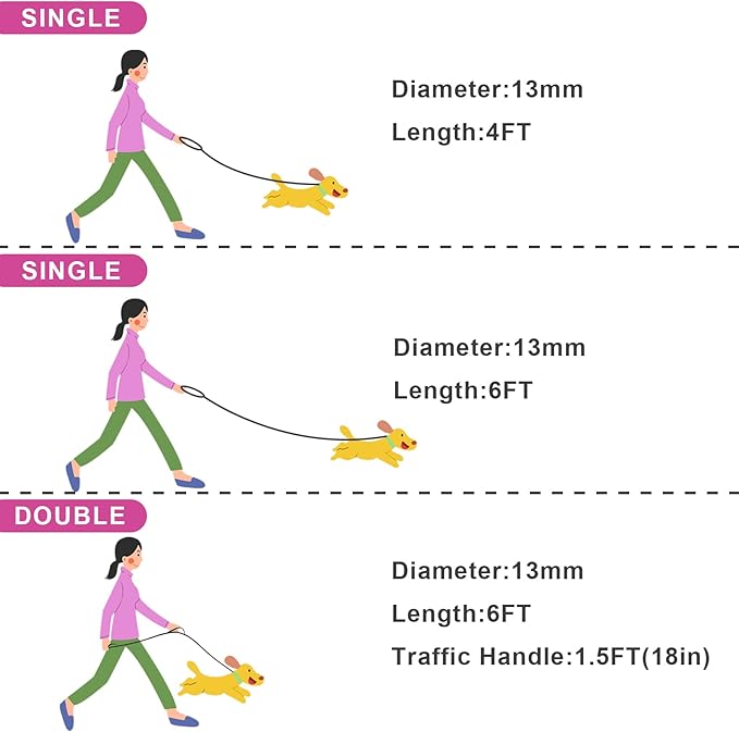- 【Available in 6 beautiful colors and comes in 2 sizes】4/6 foot dog leash is great for walking, running, hiking or training, and is a perfect balance between freedom and control. Give your dog plenty of freedom while keeping everything under your control.