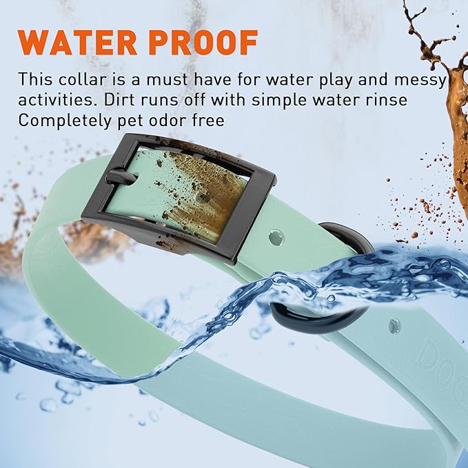 • Free Your Dog to romp in puddles and retrieve from lakes with the Dogline Biothane Waterproof Dog Collar. This water-repellent collar stays dry and odor-free, without shrinking or losing flexibility.