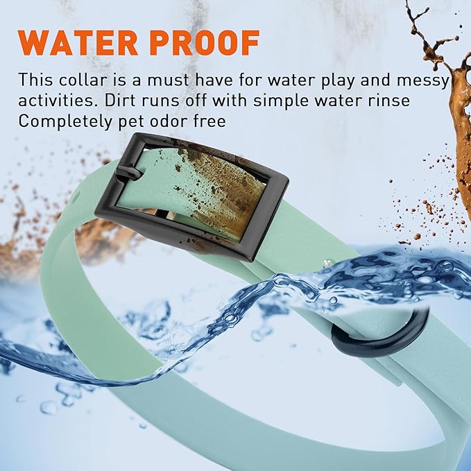 • Free Your Dog to romp in puddles and retrieve from lakes with the Dogline Biothane Waterproof Dog Collar. This water-repellent collar stays dry and odor-free, without shrinking or losing flexibility.