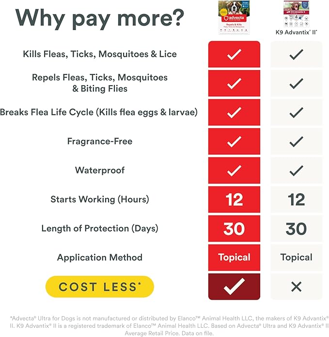 - NO BITE REQUIRED TO KILL: ADVECTA Ultra for Dogs topical flea and tick treatment kills through contact, killing and repelling fleas, ticks and mosquitoes