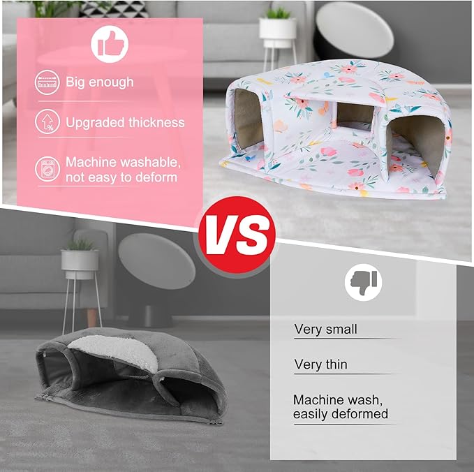 - Machine Washable: The guinea pig hideout is made of short plush and high-density elastic sponge; Not only is it very soft to the touch, but also more comfortable and warm, the fabric is thick enough to hold its shape and stay upright after many washes