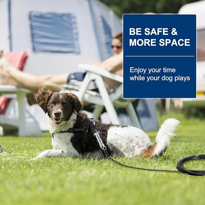 - High Strength and Secure Hook: The cable are equipped with a lockable clip, ensuring that your dog stays securely attached while enjoying freedom to roam. The innovative 360° rotating design prevents tangling, allowing your furry friend to move freely without getting stuck
