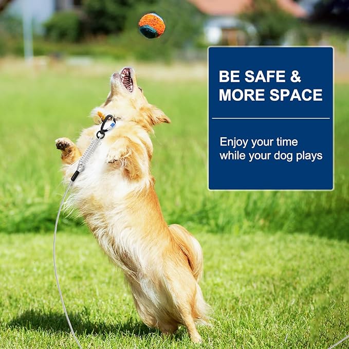 - High Strength and Secure Hook: The cable are equipped with a lockable clip, ensuring that your dog stays securely attached while enjoying freedom to roam. The innovative 360° rotating design prevents tangling, allowing your furry friend to move freely without getting stuck