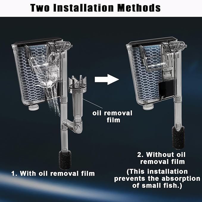 - 🐠The Parameter of the Filter: AC110V/60Hz, 2.5W, 250L/H, the flow is adjustable. The filter is hanging back, which allows for more room in the tank. Remember, fill the filter with water before every start-up!