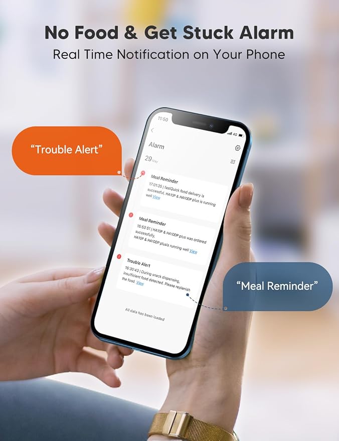 - Smart Alerts for a Seamless Experience: No more worrying about your pet going hungry. The device sends instant notifications to your smartphone app if the feeder is blocked or runs out of food. The built-in infrared sensor checks and halts the food dispensing process if any blockage is detected.