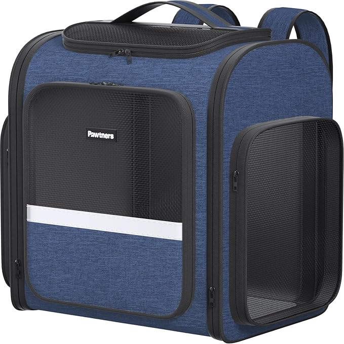 - 【Breathable and Comfortable】The Pawtners soft cat carrier is designed with 4-sided breathable mesh windows, ensuring optimal breathability and letting your pet enjoy the fresh air! The backpack has openings on the front, side, top, and back, making it very easy for your pet to get in and out.