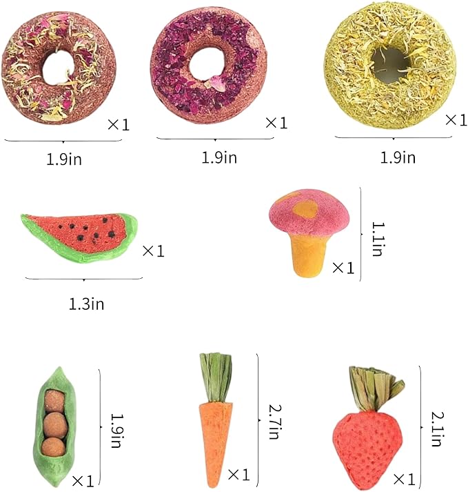 - [Versatile] These rabbit chewing toys can be hung in the cage with hooks and are suitable for rabbits, hamsters, guinea pigs, squirrels, chinchillas, and parrots, providing more fun for your pet.