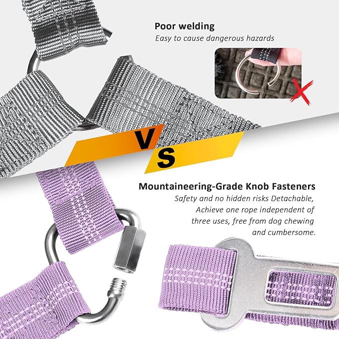 - 🐕【3-in-1 Multiple Uses Designed】 For effective restraint and protection during travel. 👉The dog seatbelt can be hung on the seat back rest 👉or inserted separately in the seat belt buckle, Dog Car Seat Cover,👉Equipped with elastic elastic rope and reflective rope design, can be used as a dog leash, so that you hold the dog partner safe night walk. Dog seat belt harness for car is perfect for pet lovers who like to take their dogs on the road, to ensure the safety of your dog while you drive.