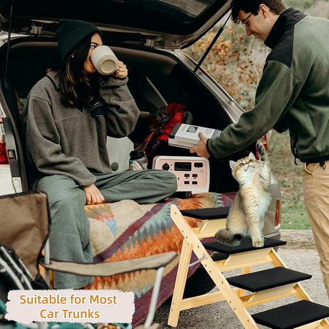 - Foldable and Easy to store: This space-saving pet ladder can be folded to a depth of 3.5 feet inches and can be easily moved, transported, and stored for convenient access