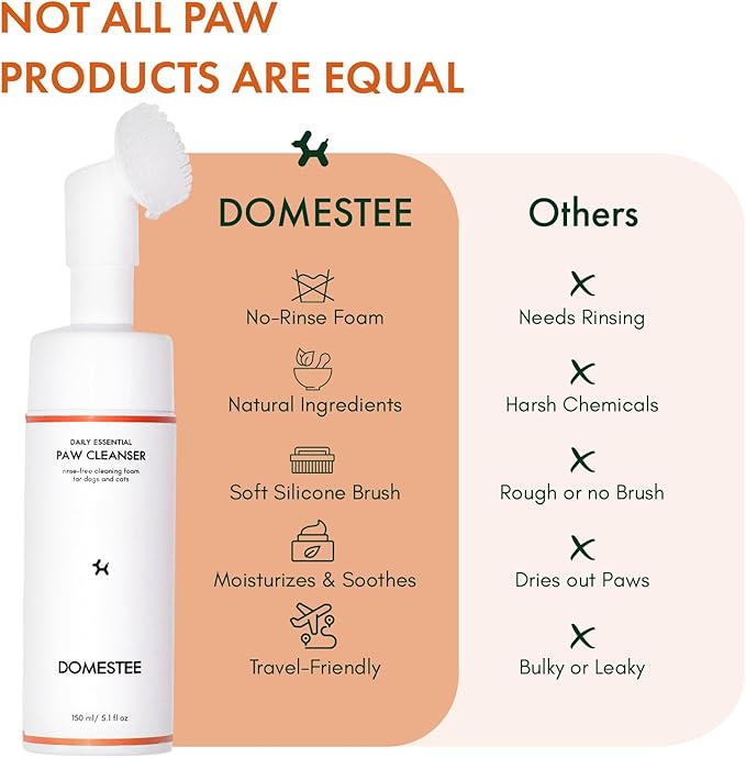 - QUICK & NO-RINSE APPLICATION: Shake the bottle dispense the foam and use the silicone brush to gently clean your pet’s paws no rinsing or baths required. Wipe away dirt and repeat as needed. The reusable silicone brush is easy to clean making it a hassle-free solution for busy pet owners and a stress-free experience for pets.