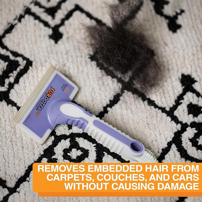 - GREAT FOR EMBEDDED HAIR - The textured main pad and serrated squeegee can get deep into carpets and couches to remove embedded hair that you didn’t even know was there. Not just for pet hair, the FurDozer will also help to collect and clean hair, lint, and other debris from your car, furniture, and more.