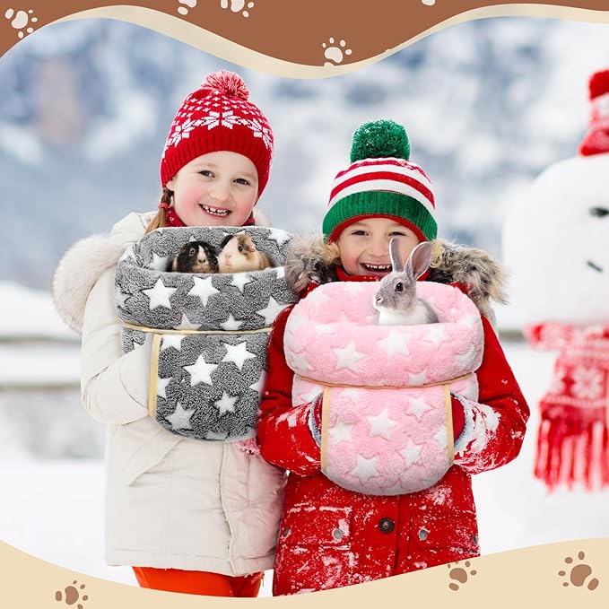 Wenqik 2 Pcs Guinea Pig Bed Cuddle Warm Hideout Small Animal Sack Cozy House Bedding Sleeping Cushion Portable Pet Carrier Cage Nest for Rabbit Hamster Rat (Gray, Light Pink,Pentagram)