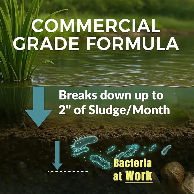 - Premium Sludge Solution for Ponds & Shoreline Defense โ Specially formulated pond tabs sink to the bottom, continuously breaking down built-up debris like muck reduce products. One dose of 5lb treats up to 30,000 sq ft, every 4 weeks in water temperatures above 50ยฐF.