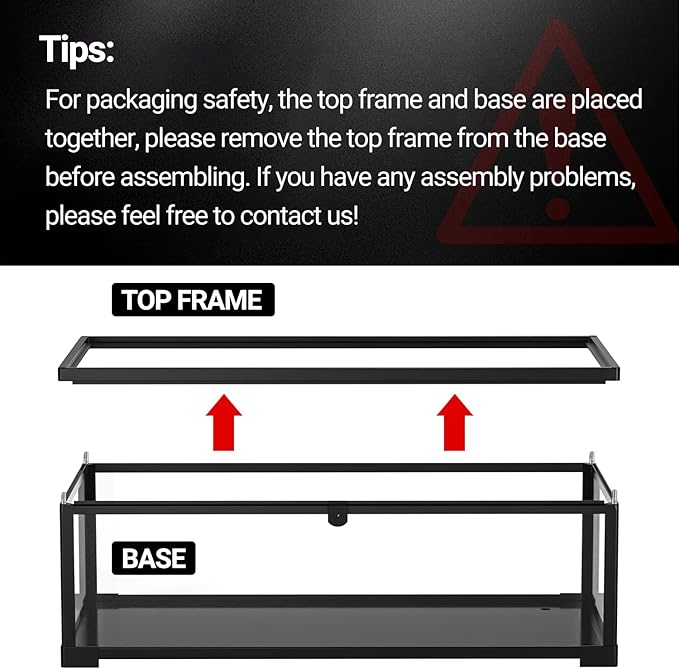 - 【Tips】For packaging safety, the top frame and base are placed together, please remove the top frame from the base before assembling. If you have any assembly problems, please feel free to contact us!