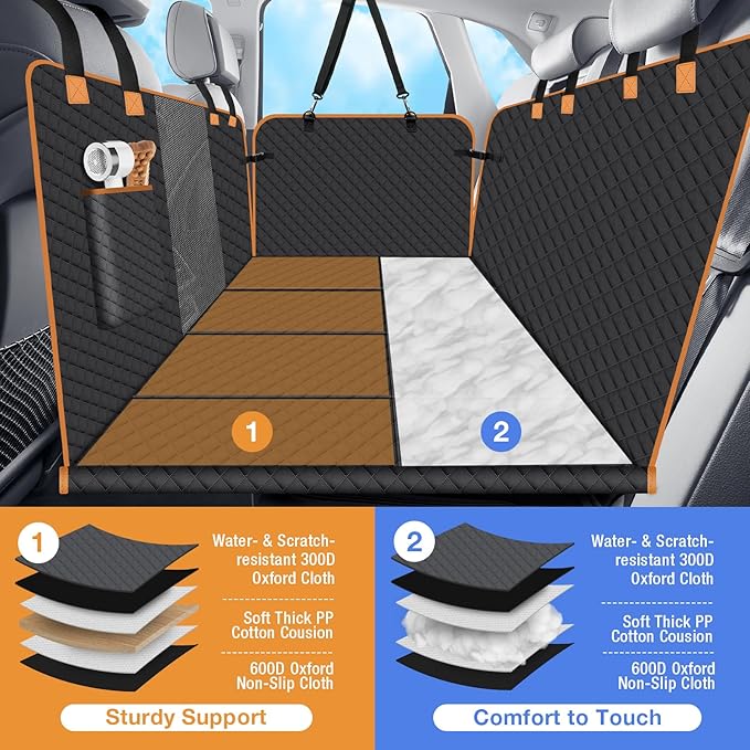 - 【No More Pets Falling】The back seat cover for dog features sturdy bottom board, which is strong enough to support your dog with dog safety seat belt to prevent your pet from sliding during drive.