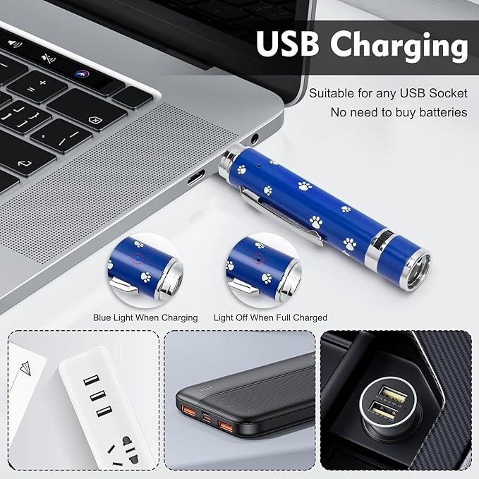 - Multi-scenario application: The red mode is great for interactive play with your pet, the purple mode can be used for detecting counterfeit bills and pet health checks, and the white mode is great for emergency lighting at night. Whether it's for home use, outdoor activities, classroom teaching, or while traveling, this cat toys are easy to use