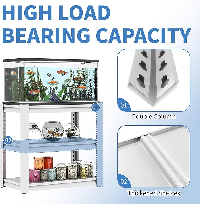 - 【HEAVY DUTY FISH TANK STAND】This fish tank stand is made of heavy-duty steel, the shelves and columns are made of double-layered metal, there is 1 support beams underneath each sturdy thickened metal heavy-duty shelf, suitable for most 20-30 gallon terrarium stand, so it's more stable and more durable than ordinary plastic or flimsy fish tank stands, and it won't bend due to the placement of the fish tanks.