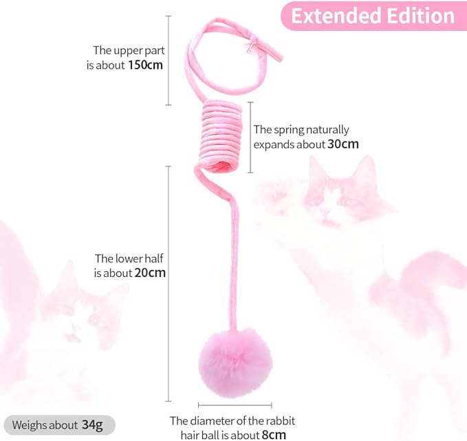 - Unique Suspended Design: This product features a spiral coil shape with a soft plush ball at the end. The irregular movement of the plush ball formed by the swing of the spring will increase more fun to playcreating an eye-catching and interactive Cat toy