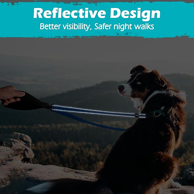 PetBonus Two Point Control Dog Leash, Works with No Pull Harnesses, No Tangle Dog Training Leashes, No Pull Padded and Reflective Walking Lead, Converts to Single Leash for Medium Large Dogs (Blue)