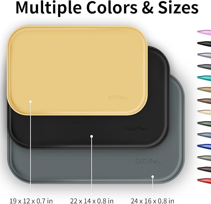- Reinforced Raised Edges - The edges of the bpa free rimmed silicon dog dish trays for floor are 3 mm thick and have a 0.8 inch high raised lips, thicker and higher than similar products. This better contains food and water inside the mat, preventing messy spills during meals that can dirty your floors or lead to your pet eating contaminated food off the ground, risking their health. Not the same as absorbent pet feeding matts.