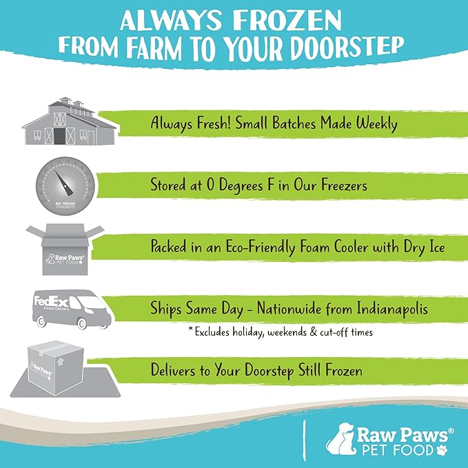 - FREE-RANGE RAW CHICKEN DOG FOOD AND CAT FOOD: Our single ingredient, natural dog food chicken and cat food chicken flavor contain no preservatives or additives. This raw dog food and cat food is sourced from chickens humanely raised on local Indiana family farms. Raw Paws dog and cat food chicken grain free recipe, with much needed amino acids and glucosamine for bone health, is the healthiest choice for your pets.