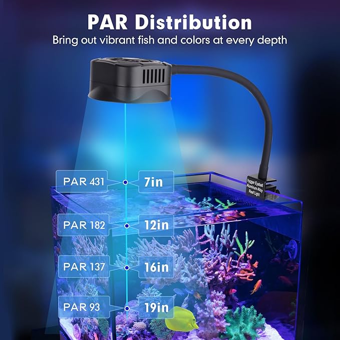 - SUPER PREMIUM MATERIALS & APPEARANCE ARTFUL - Aluminum housing dissipates heat faster and is more durable. A custom designed wide-angle optical lens achieves even PAR distribution, perfect for 24"x24" coverage. The Special Anti-rust design flexible full aluminum with oxidation bracket suitable for different size of coral tanks. Oblate base efficiently increase stressed area and protect coral reef tank well. Tank glass thickness: 0.2-1.0 inch
