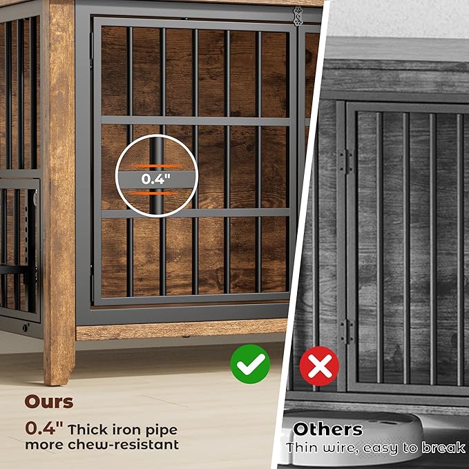 - 🐕 Sturdy and Chew-Resistant: Dog crates for medium dogs feature a stronger steel tube structure instead of fragile iron wire, this piece of dog kennel furniture for more safer and has a longer service life than other dog crates. Pet crate furniture uses rotating "Bones" With a door stopper design to increase firmness and avoid dog break out it.