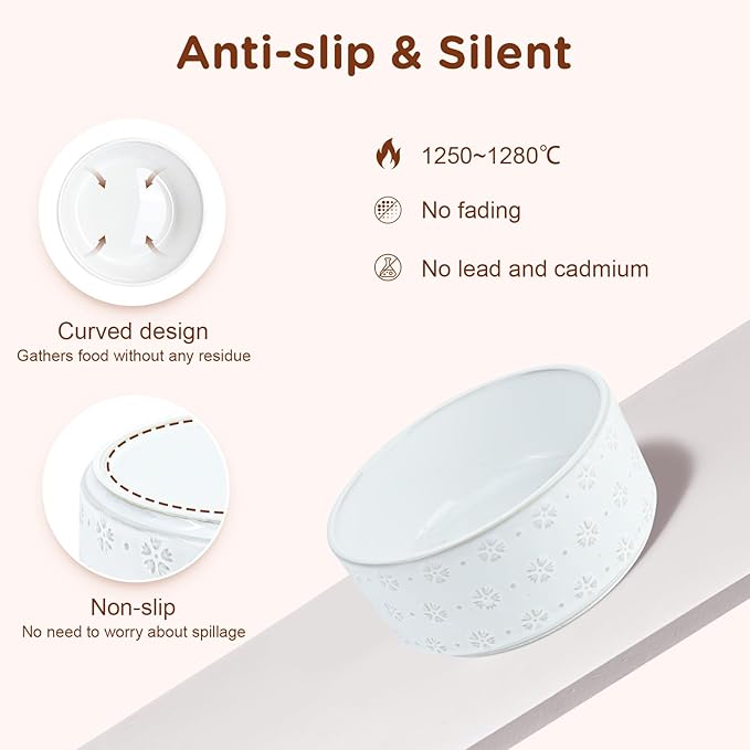 - SELECTED CERAMIC MATERIAL: The bowl is made of high-quality ceramic with a smooth surface and fine structure, which is not only beautiful and elegant, but also safe and hygienic to use. The non-porous nature of the ceramic prevents the absorption of odors or food residues and thus protects the health of your pet