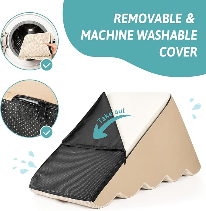 - LEAKPROOF & EASY TO USE: The climbing surface of the dog stairs is made of leak-proof material, so you don’t have to worry about your dog peeing on the stairs. The bottom is made of non-slip nylon to minimize the movement of the stairs. The two sides of the stairs are made of wear-resistant cotton and linen for dogs to sharpen their claws, and there is a convenient handle at the back for easy carrying