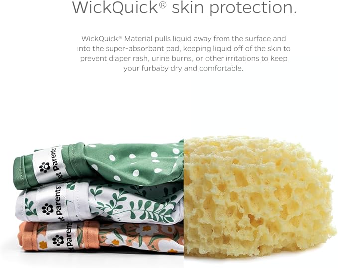 - HIGHLY ABSORBENT DOGGIE DIAPERS: Because we know your Great Dane 'goes' more than your Chihuahua, the diaper pad that is sewn into our dog diapers female increases with the size, because bigger dogs = more liquids. WickQuick material wicks liquid from the surface and into the dog period diapers, keeping your furbaby dry and reducing urine burn or irritation. Our diapers also have a waterproof outer layer to prevent leaks and damage to rugs, carpets, upholstered chairs and sofas.