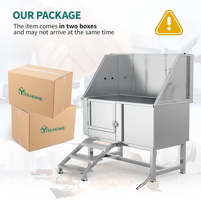- Ideal Construction: YITAHOME professional dog bathtub's body boasts a 304 stainless steel with a load capacity of 330 lbs; It resists deformation and rust, ensuring easy cleaning and lasting durability; The fully welded one-piece design prevents water leakage and allows easy installation