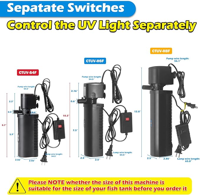 - SEPARATE SWITCHES - Control the water pump and fish tank light separately. When you only want to use the aquarium filter function, you can turn off the fish tank U-V light separately.