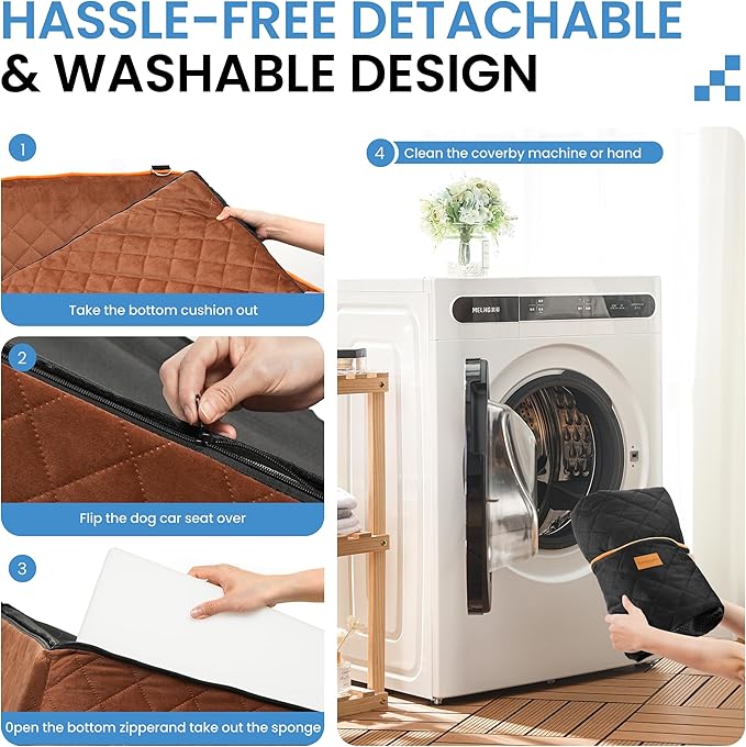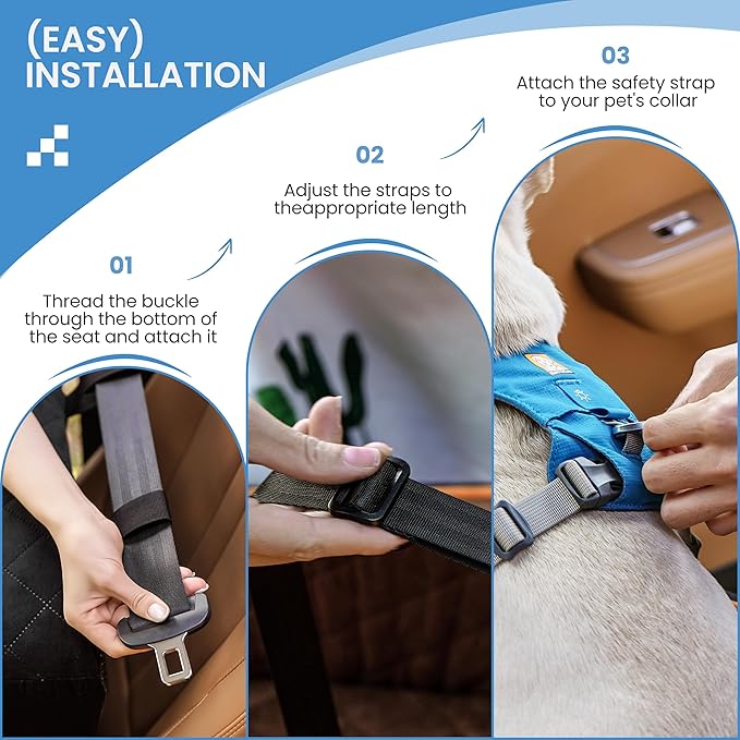 - Easy to Install & Clean: The adjustable straps securely attach to your car’s seats, and the removable cover makes cleaning hassle-free. Keep your car clean while giving your pet the best travel experience!