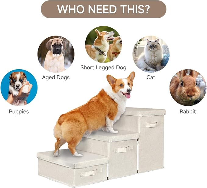 - 2-In-1 Multifunctional Pet Stairs: This pet step ladder can not only be used as a climbing ladder, in addition, this cat and dog climbing ladder can also be used as a storage box, you can put your pet's toys, food and other supplies in it