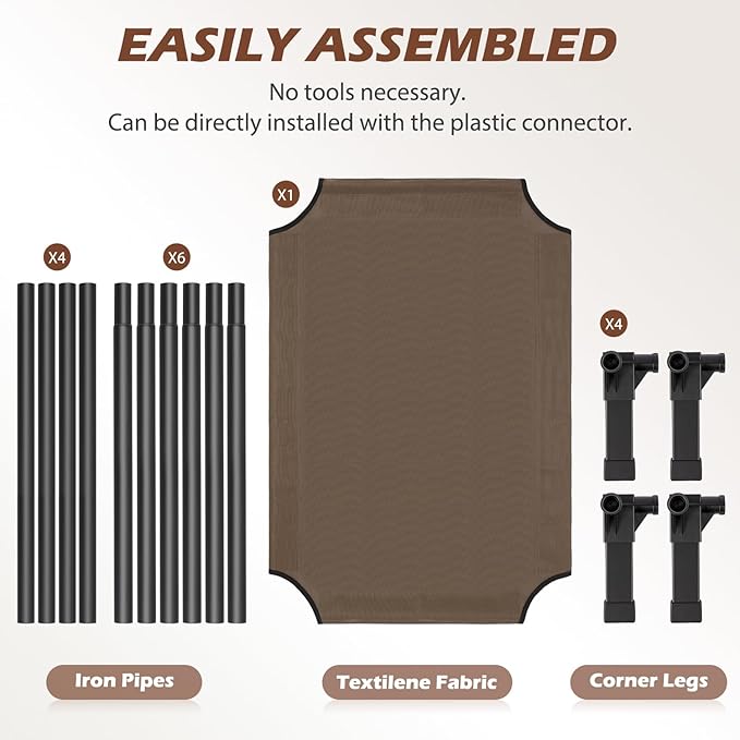• Easy to Install: The cooling dog cot can be installed without the use of any tools, screws and can be installed directly with the plastic connector. It only takes a few minutes of your time, and presto. It's up and ready for your pet to enjoy in. Perfect for any indoor space or outdoor adventure.