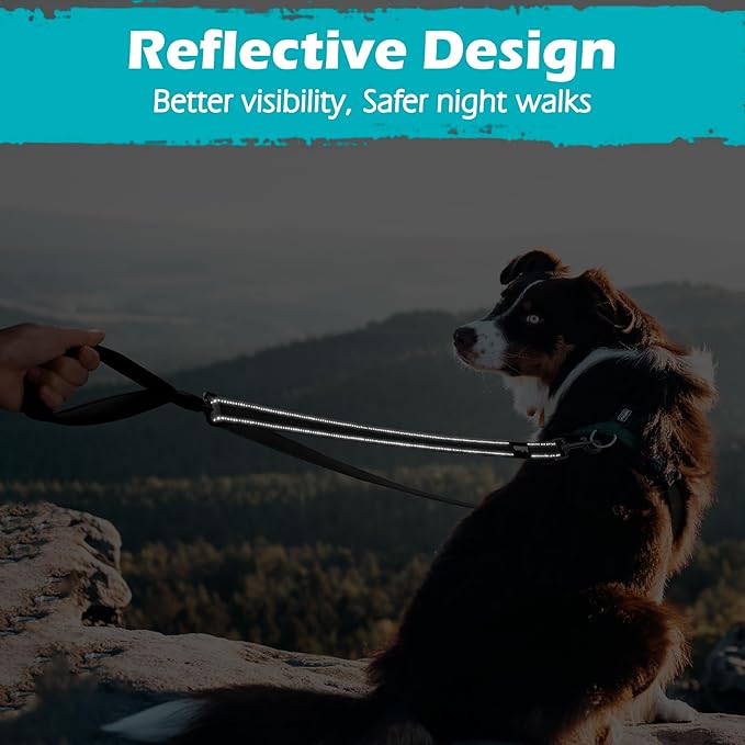 PetBonus Two Point Control Dog Leash, Works with No Pull Harnesses, No Tangle Dog Training Leashes, No Pull Padded and Reflective Walking Lead, Converts to Single Leash for Medium Large Dogs (Grey)