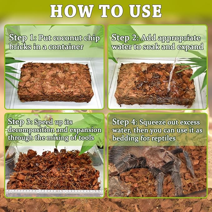 - Safe & Quality Materials: Coconut chips made from natural and organic coconut fiber, 100% organic and sustainable, dust-free compostable, odor-free, gentle on skin and scales, natural coco chips mimic the natural habitat of reptiles and provide a safe, clean, natural growing environment for your reptiles