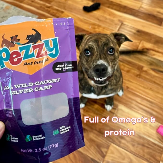 - SUSTAINABLE & ECO-FRIENDLY -- Our Silver Carp Chips are made from wild-caught invasive fish, helping restore ecosystems and support small-scale fisheries. Packaged in 100% compostable materials, these treats are a sustainable choice for eco-conscious pet owners.
